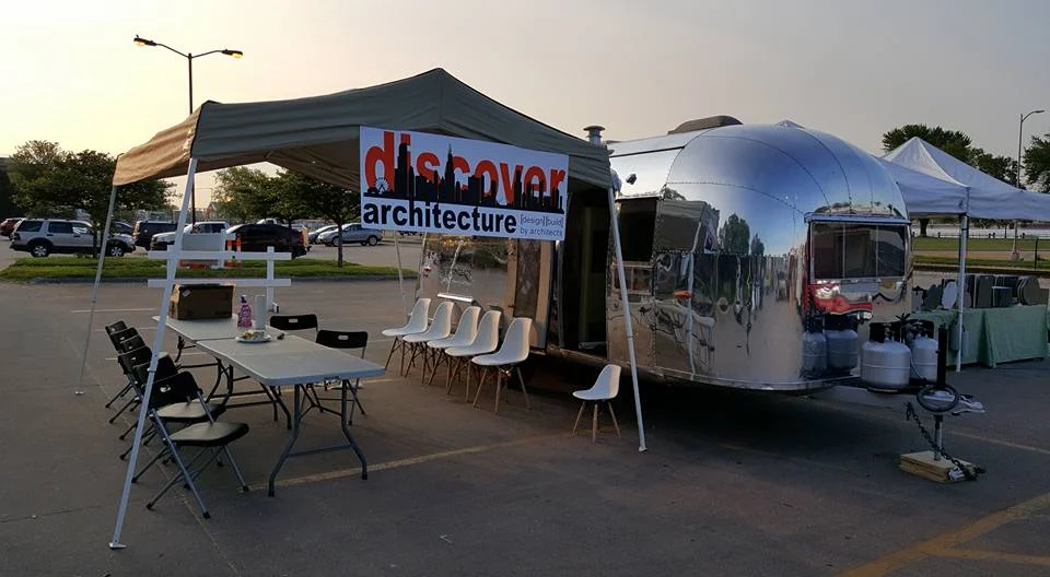 It has been approximately a month since we purchased the new Airstream mobile office, a 1958 Flying Cloud. The "Archistream" has been active in Davenport's Freight House Farmer's Market on Saturdays as well as being stationed at the former Governor's restaurant in Moline.