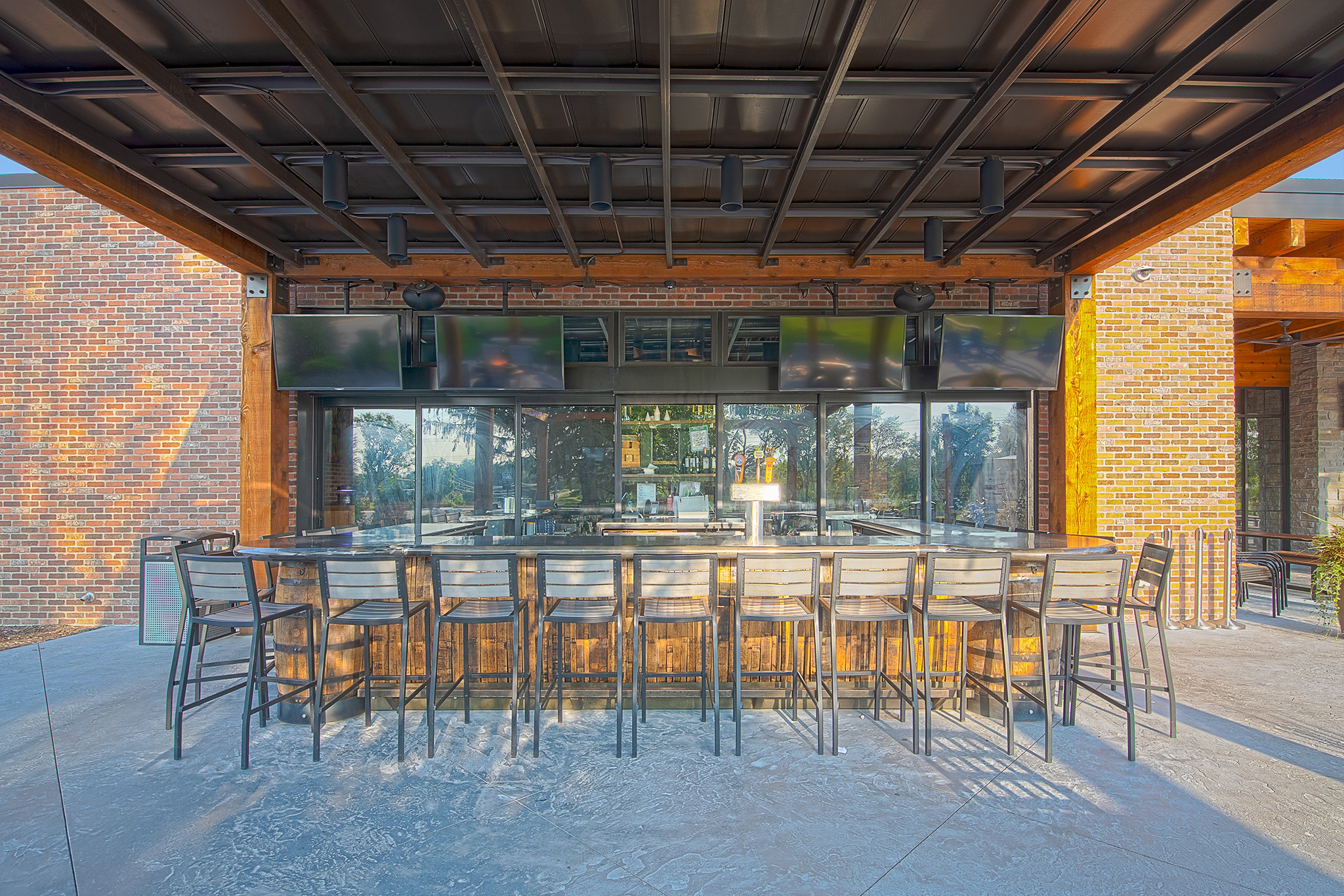 The interior is designed to ensure patrons can enjoy the restaurant’s atmosphere without views of the parking lot and busy Devil’s Glen. The design team selected all finished and designed custom furniture, fixtures, and artwork throughout the building.