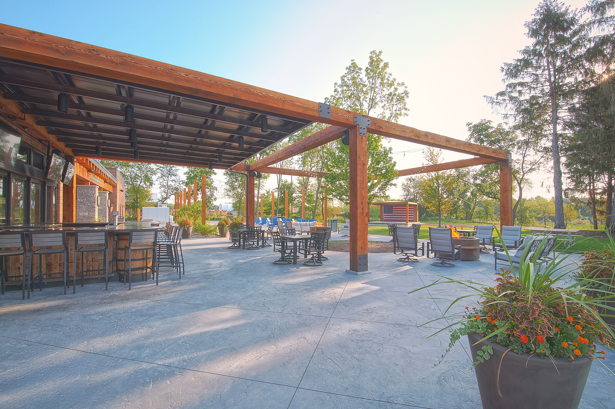 When beginning the design of The Tangled Wood, our team took a holistic approach, envisioning the property as an oasis within the city of Bettendorf. Taking advantage of the natural pines and rolling hills, the building was positioned to experience the beautiful landscape indoors and on the expansive patio.